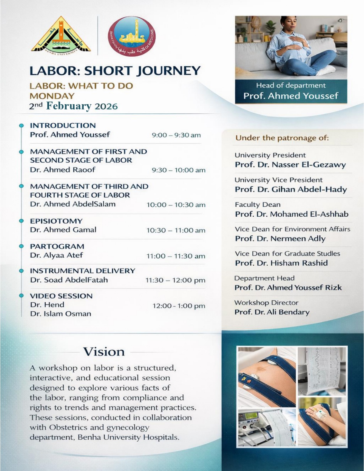 المؤتمر السنوي تم التحديث آخر مرة في 05 أبريل 2026. A workshop on labor is a structured interactive, and educational session designed to explore various facts of the labor, ranging from compliance and rights to trends and management practices These sessions, conducted in collaboration with Obstetrics and gynecology department, Benha University Hospitals