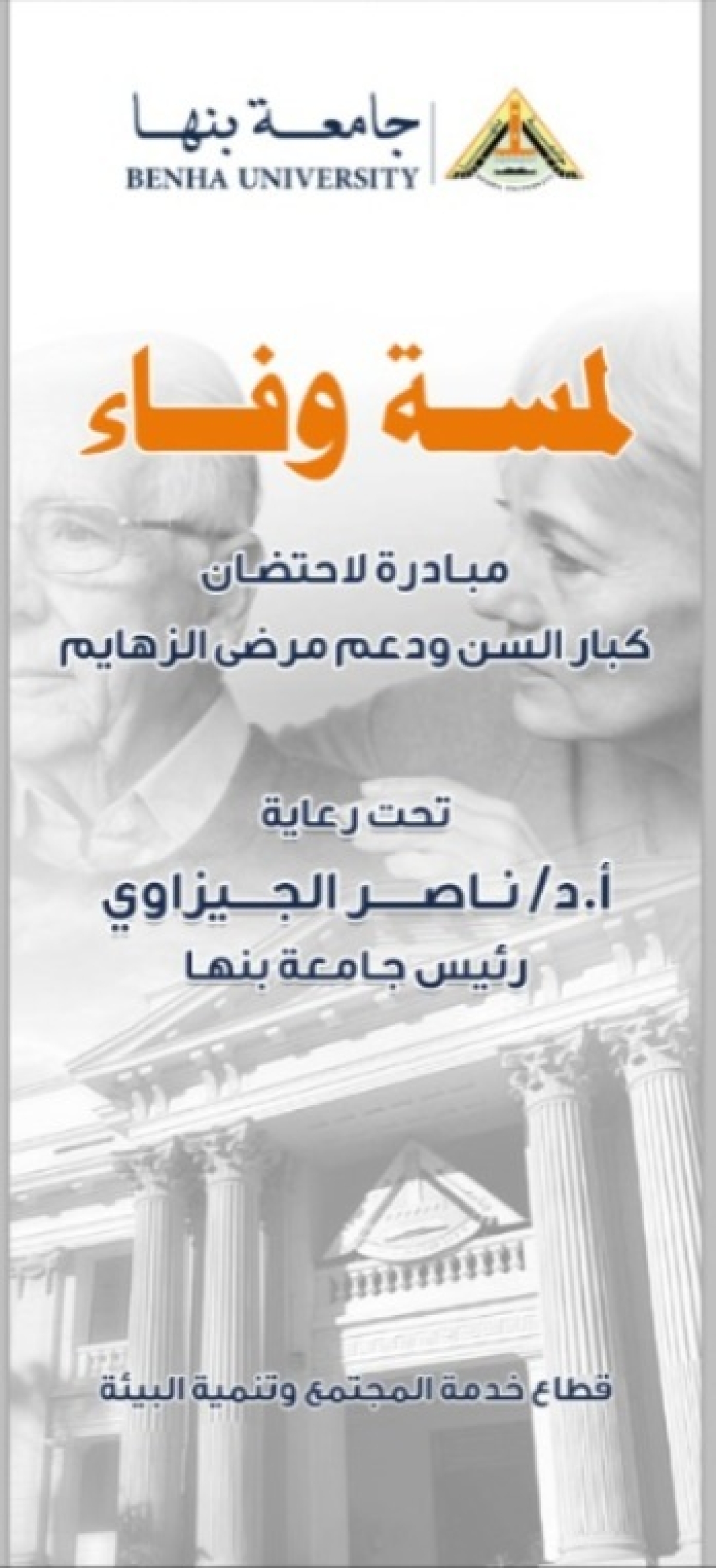 برعاية الدكتور ناصر الجيزاوي رئيس جامعة بنها ، أطلق قطاع خدمة المجتمع وتنمية البيئة بالجامعة مبادرة "لمسة وفاء" لرعاية كبار السن ، وذلك في إطار دور الجامعة الخدمي والمجتمعي.